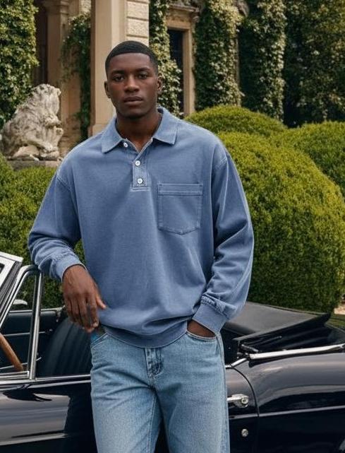 CLEARANCE SALE🔥 Men's Fashion Retro Washed Distressed Cotton Lapel Long Sleeve Polo Shirt
