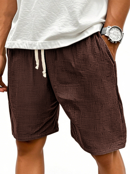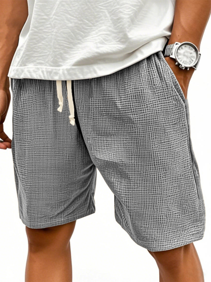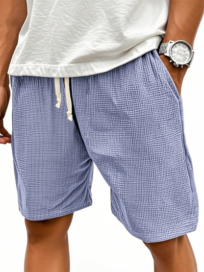 Men's Comfortable Waffle Texture Lace-up Stylish Casual Loose Shorts